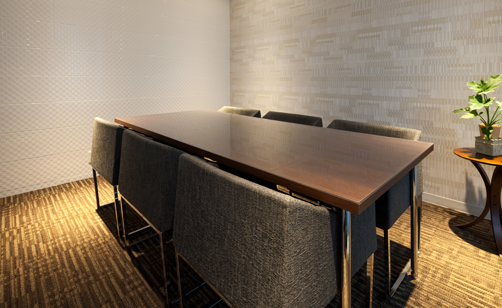 さまざまな表情が楽しめる素材を多用し、迎賓・高級・重厚を表現。