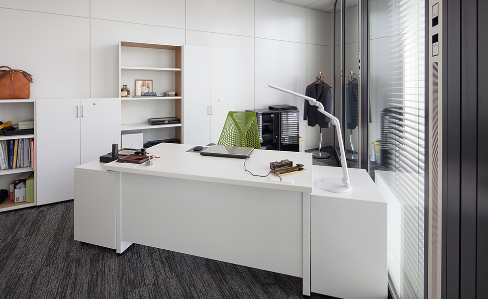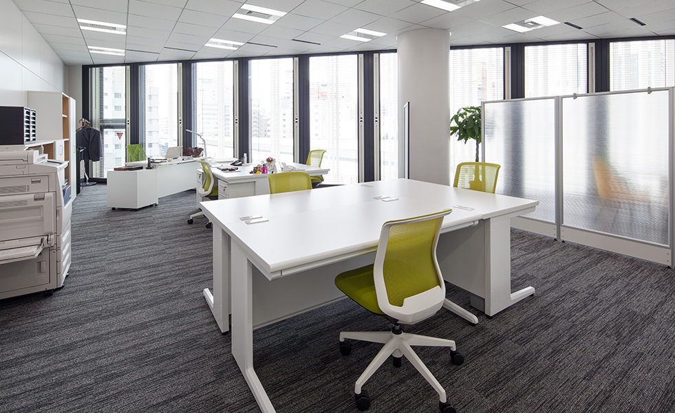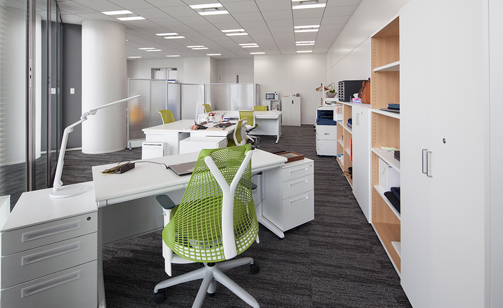 シンプルなカラーコーディネートで明るく爽やかなオフィスに。